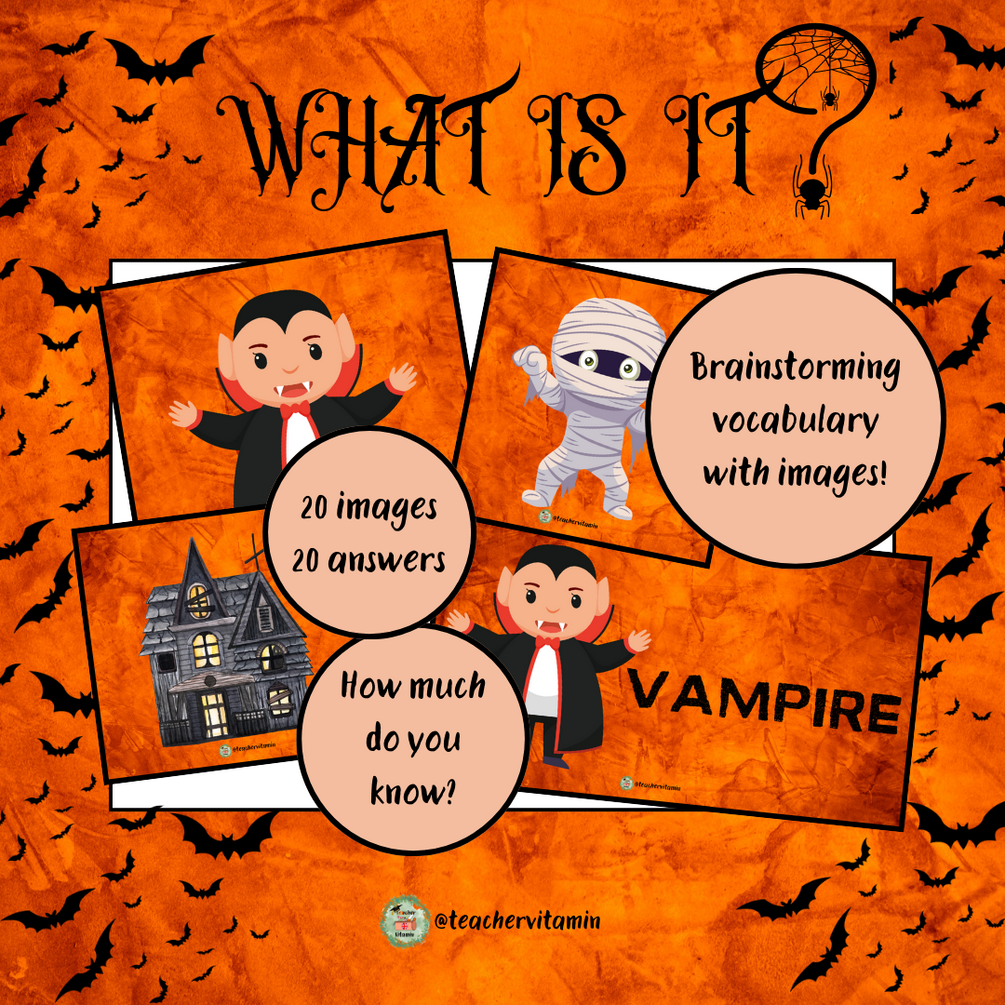 Brainstorm Halloween vocabulary with your students by guessing the name of the picture!